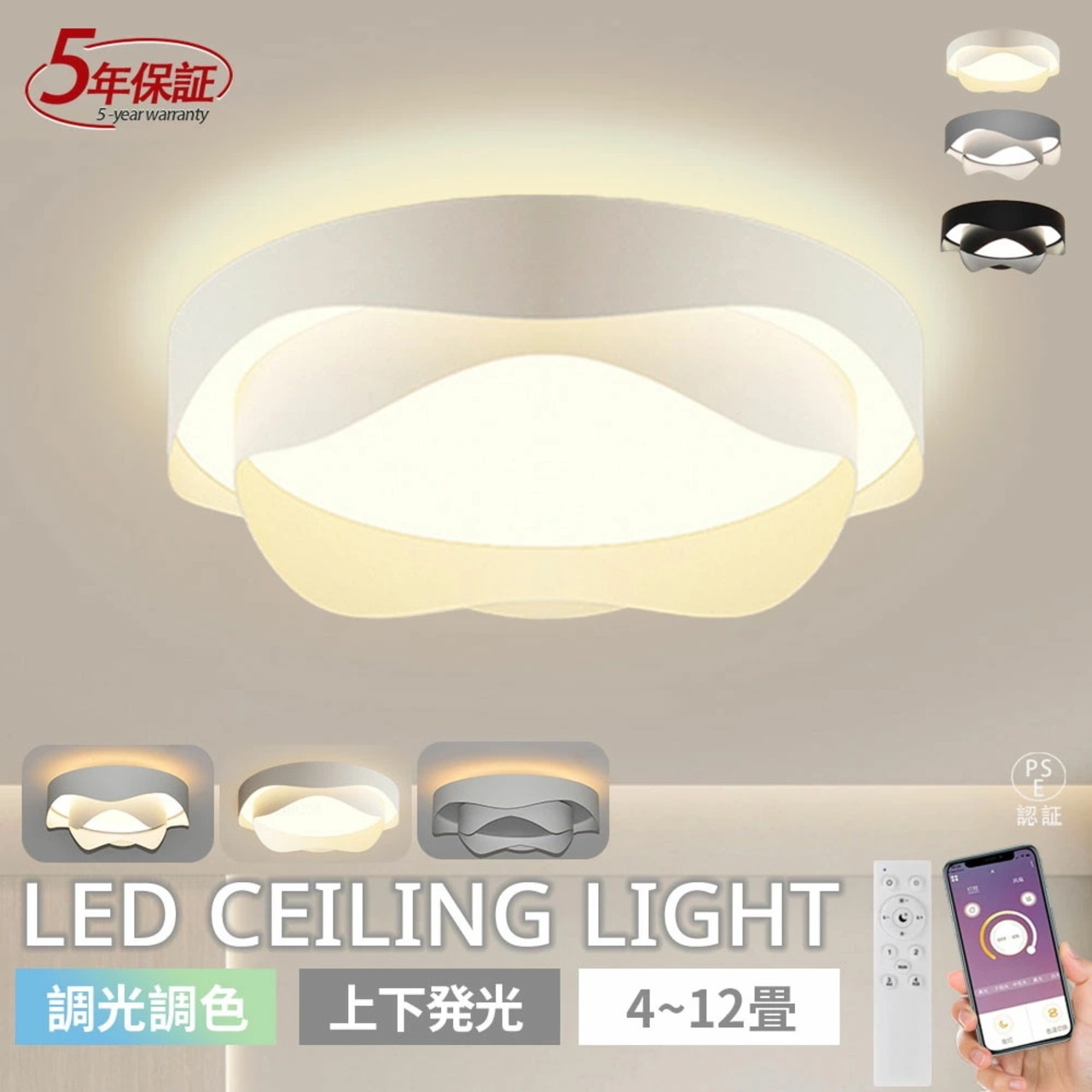 dd07126 【5年保証★上下発光】シーリングライト led おしゃれ 電気照明 10畳8畳6畳4畳 明る LEDシーリングライト リモコン 北欧 明るい 調光調色 間接照明 ライト リビング 子供部屋 寝室 和室 洋室 照明器具 インテリア カフェ リビング用 スマホ い シンプル モダン | EDA