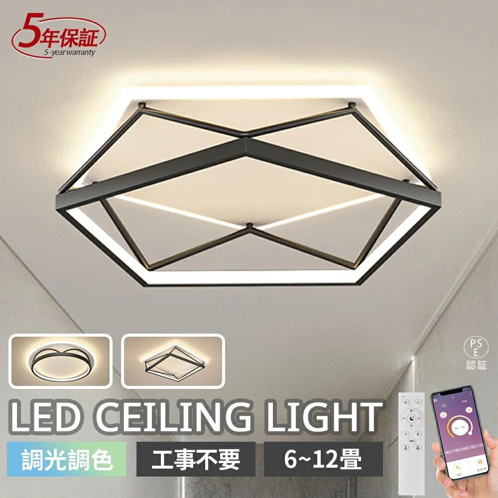 dd12529 【5年保証】シーリングライト LED 調光調色 おしゃれ 北欧 4畳 6畳 8畳 10畳 12畳 電気 四角形 長方形 幾何学シーリング 天井照明 照明器具リビングルームライトリビング照明 洋室 寝室 和室 工事不要 書斎 食卓用 寝室用 居間用 スマホ連携 引っ掛対応 | EDA
