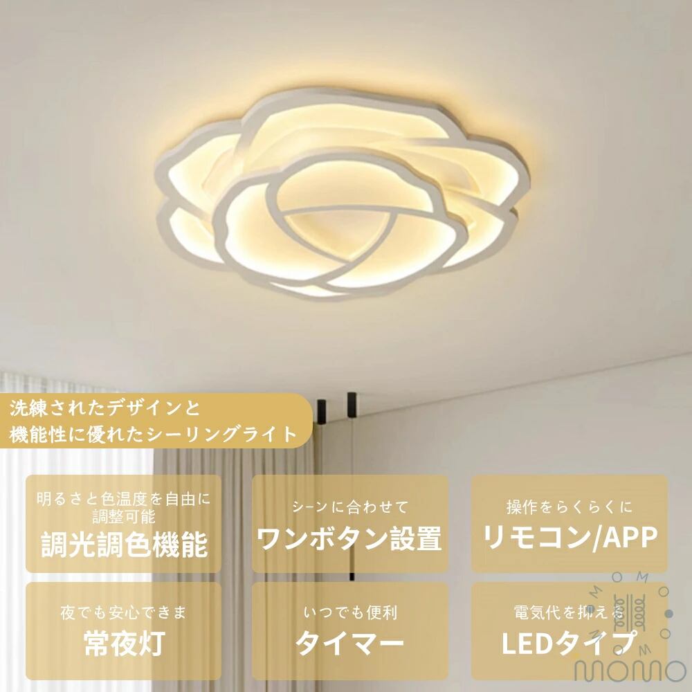 dd1016 【5年保証】シーリングライト LED 北欧風 おしゃれ リビング 寝室 子供部屋 調光調色 LED常夜灯 花びら型 かわいい モダン LEDシーリング 6畳8畳10畳 洋室 電気 LED天井照明 間接照明 リモコン タイマー付き スマホ連携 照明器具 明るい 省エネ | EDA