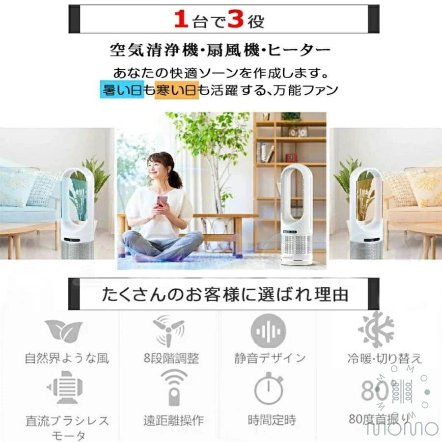 jrq201h 【2年保証!レビュー特典 】セラミックヒーター ヒーター サーキュレーター 冷暖兼用 暖房器具 空気清浄 風量8段階 UV除菌 羽根なし 電気ストーブ DCモーター 羽根なし扇風機 左右首振り 温風冷風 タワーファン 自動首振り リモコン付き 静音 省エネ 脱衣所 部屋用