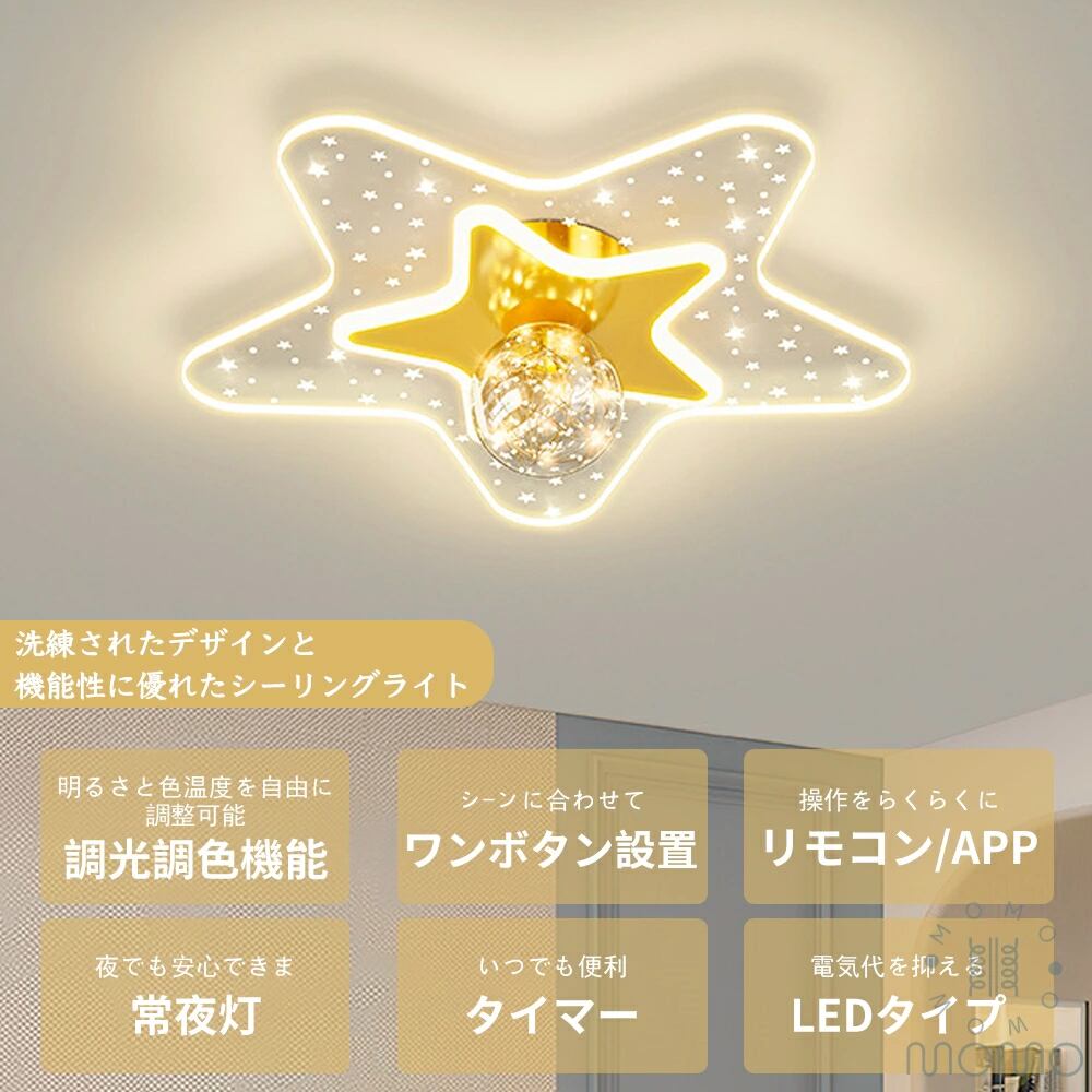 dd10302 【5年保証】シーリングライト LED 北欧 かわいい 子供部屋 リビング 寝室 調光調色 LED常夜灯 おしゃれ 星型 キッズLEDシーリング 6畳 8畳 10畳 ピンク 電気 アッパーライト LED天井照明 間接照明 リモコン タイマー付き 照明器具 明るい 省エネ | EDA