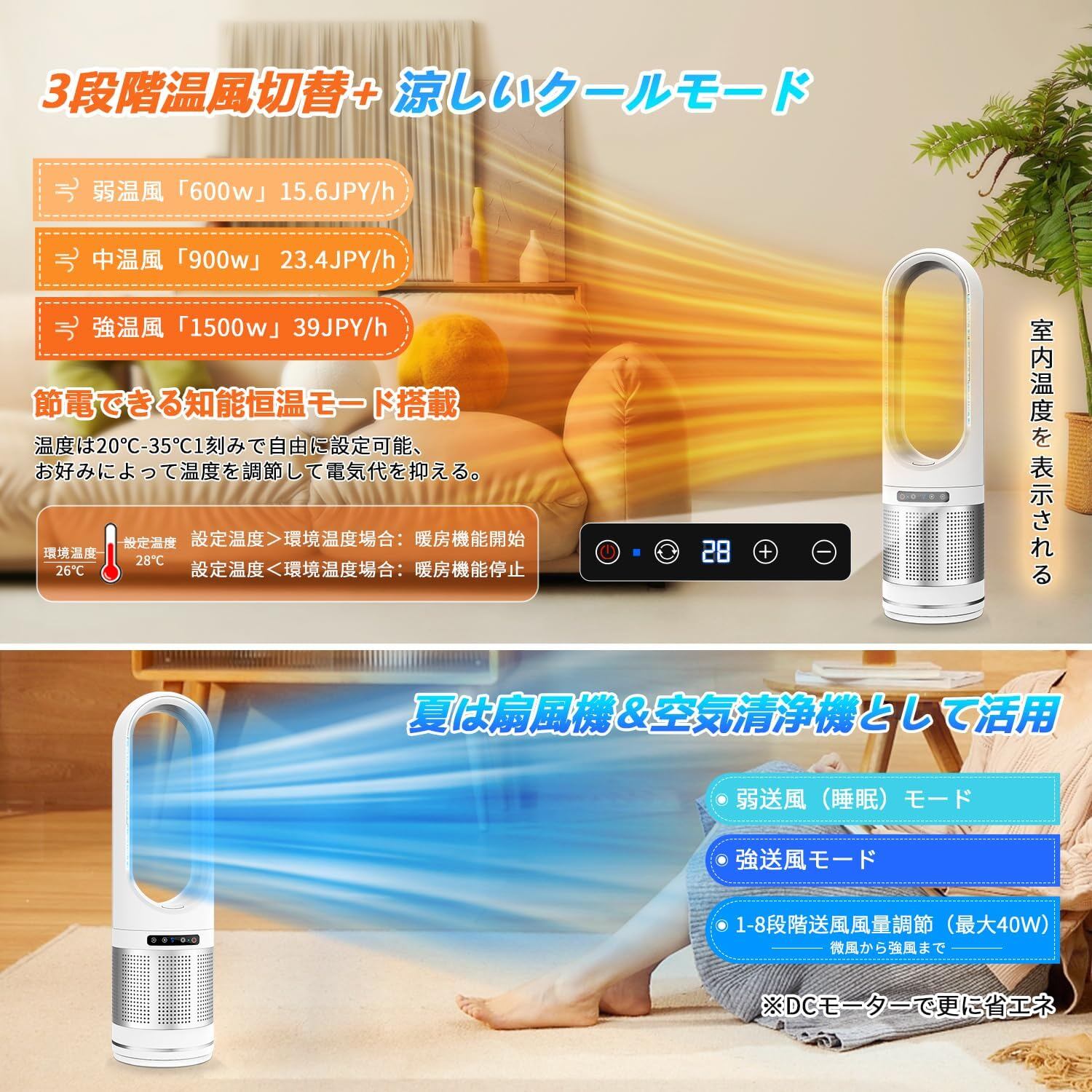 C91jrq05C1 扇風機 冷暖両用 空気清浄機 ヒーター セラミックヒーター 空気清浄 静音 空気循環 セラミックファンヒーター 電気ファンヒーター 電気ストーブ 1400W コンパクト 5段階暖風調節 ファンヒーター 左右 首振り リモコン付き タイマー機能 省エネ